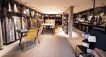 Le nouveau magasin/showroom se présente aujourd'hui sur une surface de plus de 350 m2, toujours situé au Boulevard de Grancy. Les magnifiques volumes ont été mis en valeur dans un style loft et présentent différents espaces de vie ainsi qu'un atelier couleurs - rideaux - tissus - papiers peints et tapis- imposant et fonctionnel.