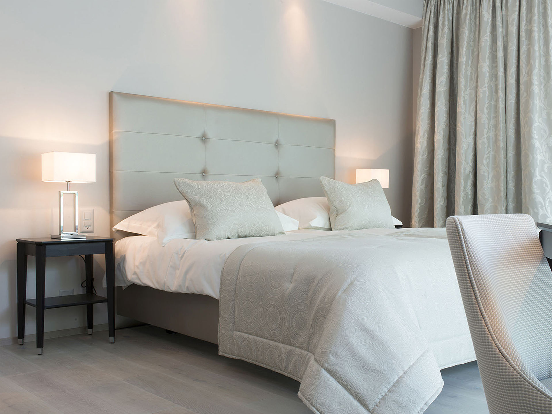 Une ambiance contemporaine et élégante pour refléter confort et bien être. Des tissus soyeux et raffinés, du mobilier aux lignes pures pour une atmosphère d’élégance intemporelle.